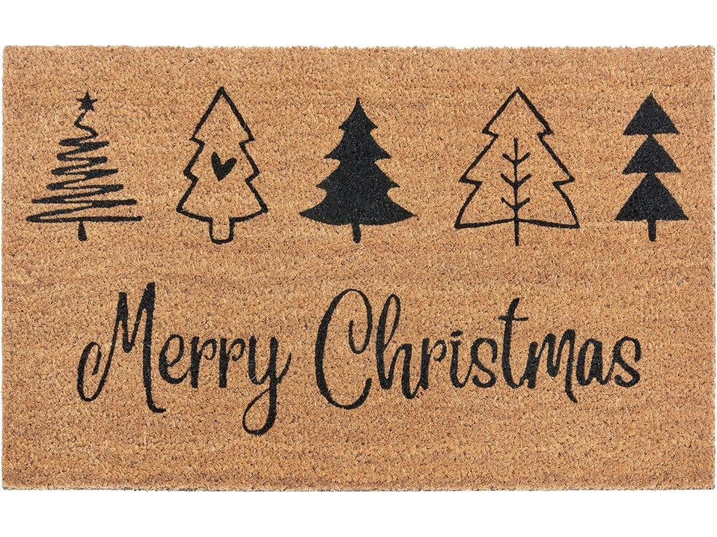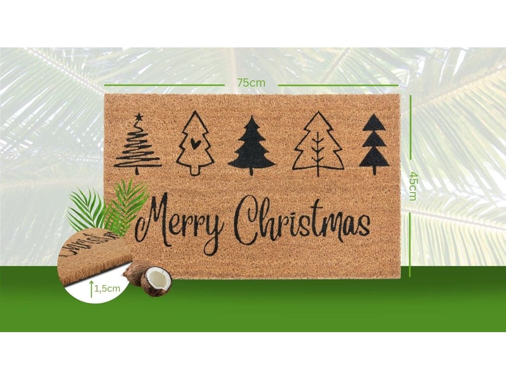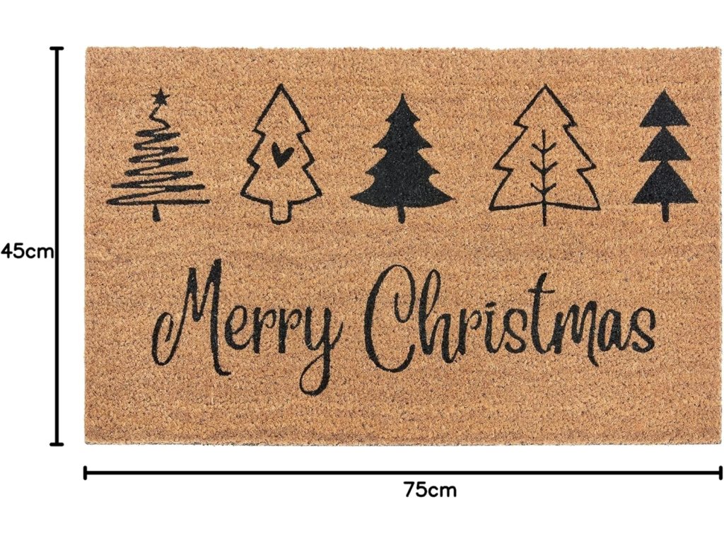 Elegantní přírodní provedení s černým potiskem stromků a nápisem Merry Christmas dodá vstupu do domu sváteční nádech.