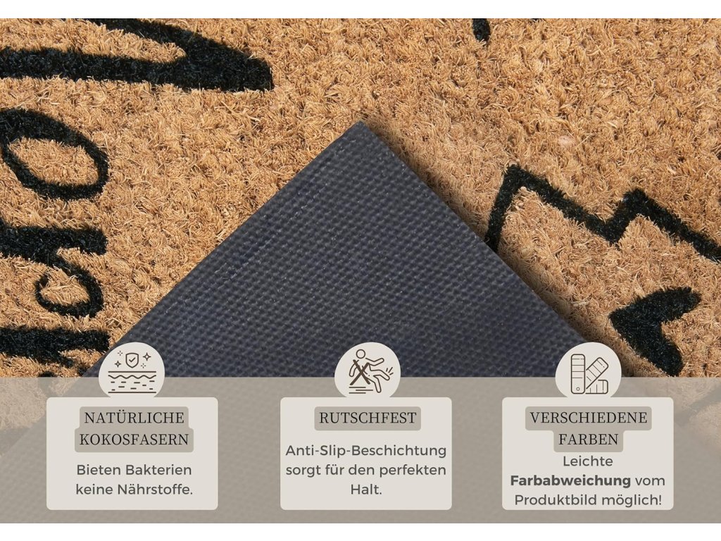 Rohožka je navržena pro každodenní používání. Hrubší struktura kokosových vláken pomáhá efektivně odstranit bláto, písek i další nečistoty z obuvi.