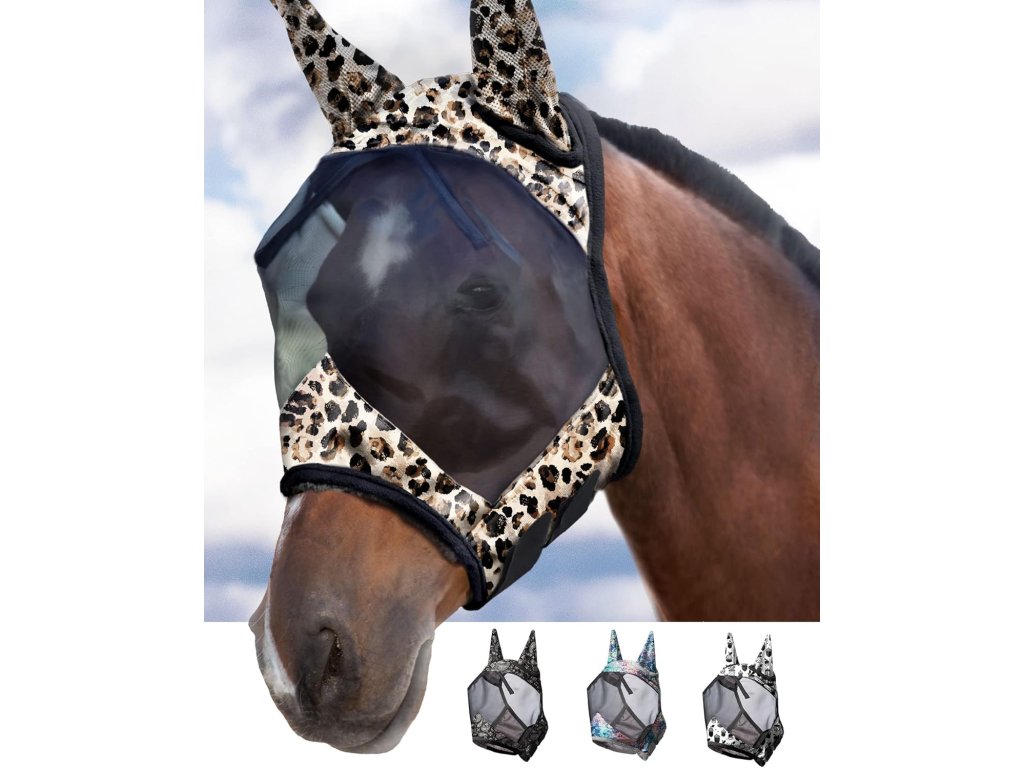 Jemná a pevná síťovina zajišťuje dostatečný odstup od očí, neomezuje výhled a minimalizuje riziko podráždění. Anatomický tvar dobře sedí na hlavě koně, měkké lemování zvyšuje komfort při celodenním nošení. Maska je vhodná pro použití na pastvině, ve výběhu i ve stáji.