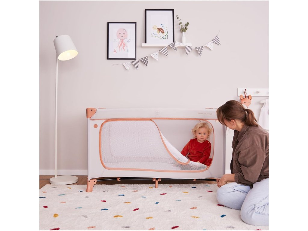 Praktický boční vstup na zip umožňuje dítěti snadno lézt dovnitř i ven, což je ideální pro malé objevitele. Postýlka tak může sloužit nejen jako místo na spaní, ale také jako bezpečný hrací prostor.