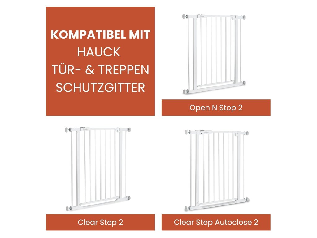 Díky kompatibilitě s modely Clear Step 2, Open N Stop 2 a Autoclose N Stop 2 je prodloužení ideální volbou pro domácnosti s dětmi nebo domácími mazlíčky. Montáž je rychlá a jednoduchá pomocí tlakového systému, který nepoškozuje zárubně ani stěny.