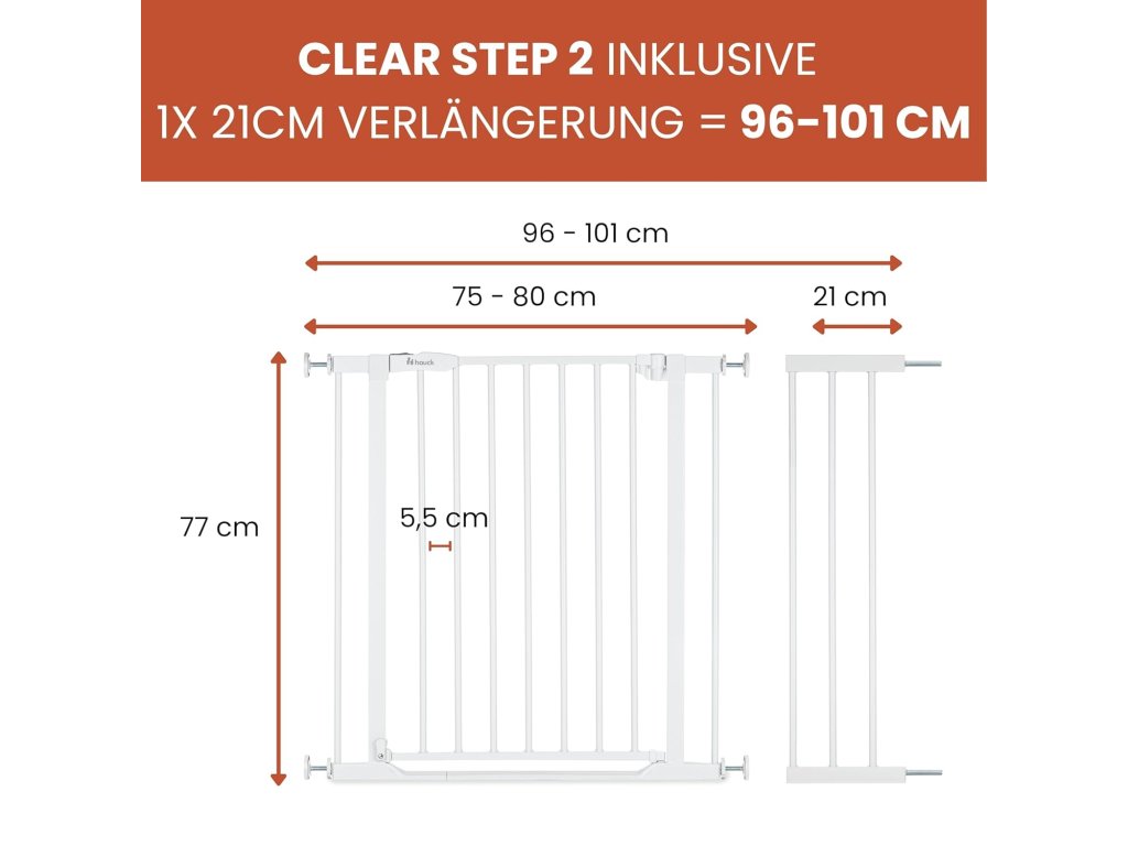 Hauck zábrana set prodloužením Clear Step 2 + 21 cm bílá