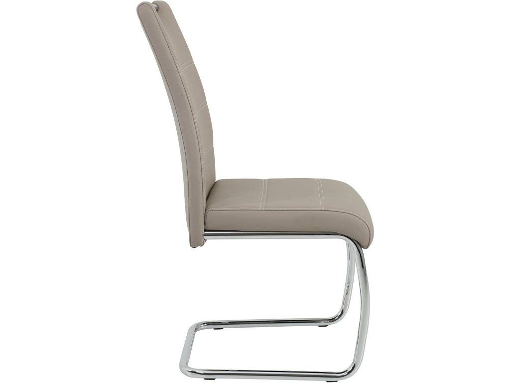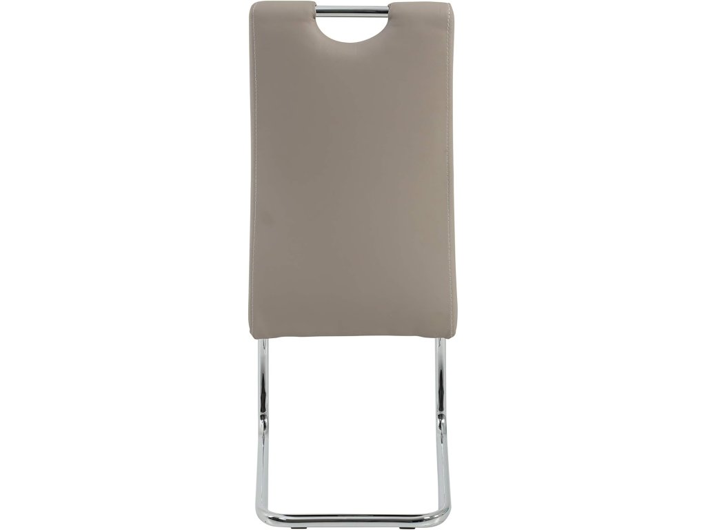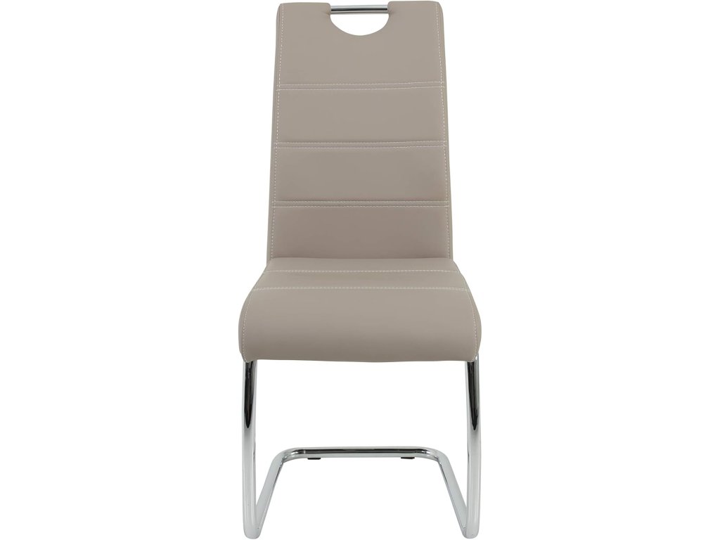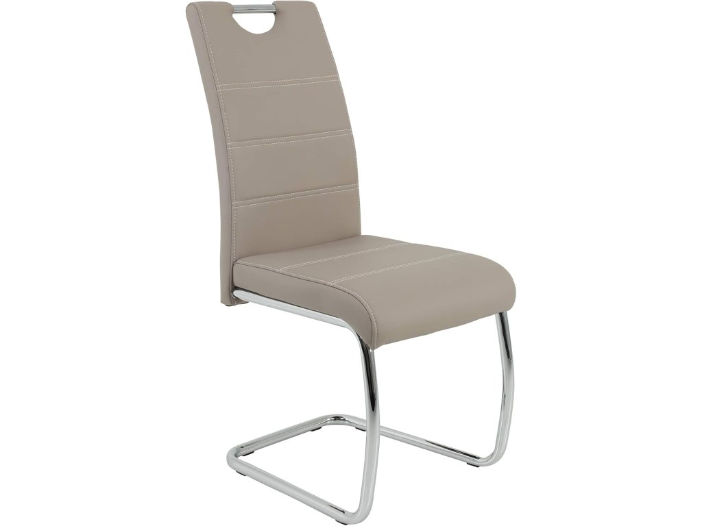 Sedák i opěradlo jsou potaženy odolnou umělou kůží v elegantní barvě cappuccino. Materiál je příjemný na dotek, snadno se udržuje a dodává židli moderní vzhled.