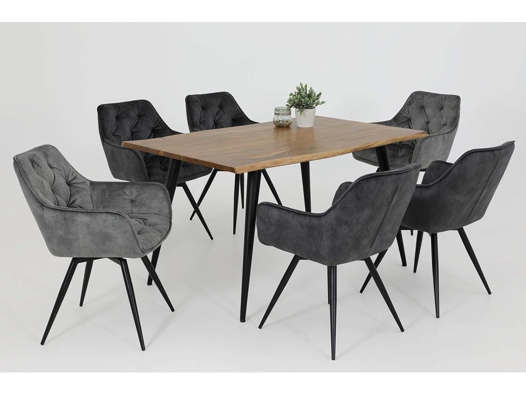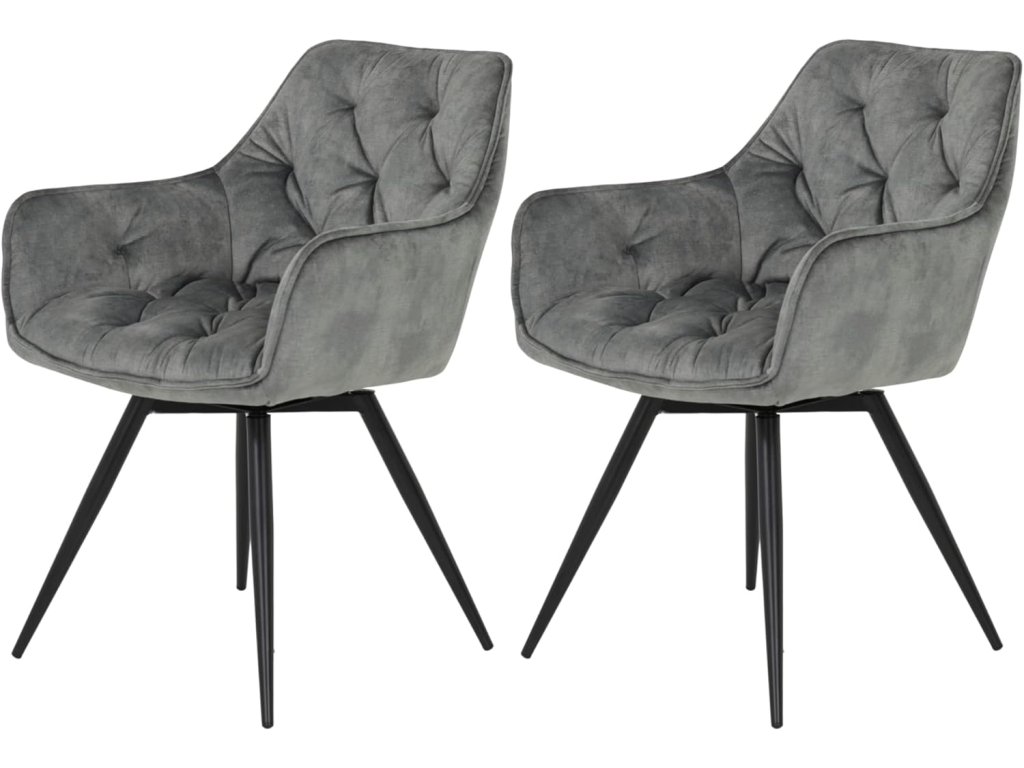 Elegantní sada 2 židlí Florentina od značky Hela Tische je ideální volbou pro jídelnu, kuchyň nebo posezení u stolu. Čalouněná sedací část v retro/vintage šedé látce poskytuje vysoký komfort a stylový vzhled. Židle mají praktické područky a otočnou základnu 360 °, která umožňuje pohodlný pohyb bez nutnosti stěhování židle. Kovová konstrukce s černým lakem zaručuje stabilitu a dlouhou životnost.