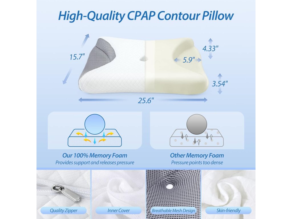 Díky kvalitní paměťové pěně se polštář přizpůsobí vašemu tělu a vrací se do původního tvaru i po dlouhodobém používání. Centrální prohlubeň navíc redukuje tlak na uši a hlavu a dvojí výšky umožňují personalizaci podle vaší preferované polohy spánku. Odnímatelný prodyšný povlak zvyšuje hygienu a lze ho snadno prát.