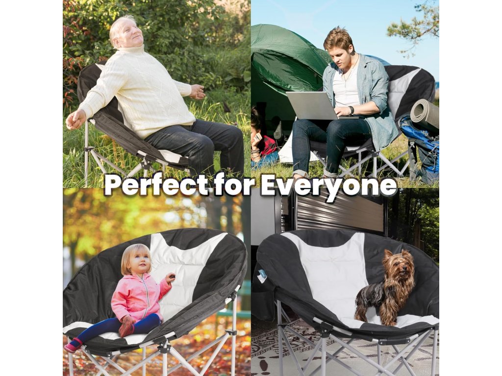 Konstrukce je skládací — snadno ho složíte do kompaktní podoby a uložíte v přiloženém cestovním obalu, který je součástí balení. Křeslo je vhodné na kemping, zahradu, táboření, festivaly, balkón nebo piknik — jeho mobilita a rychlé rozložení výrazně usnadní použití.