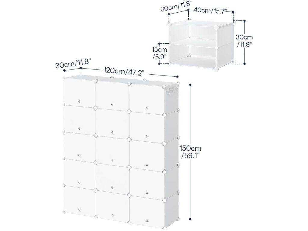 - 📦 15 praktických přihrádek – každá o rozměru cca 40 × 30 × 30 cm