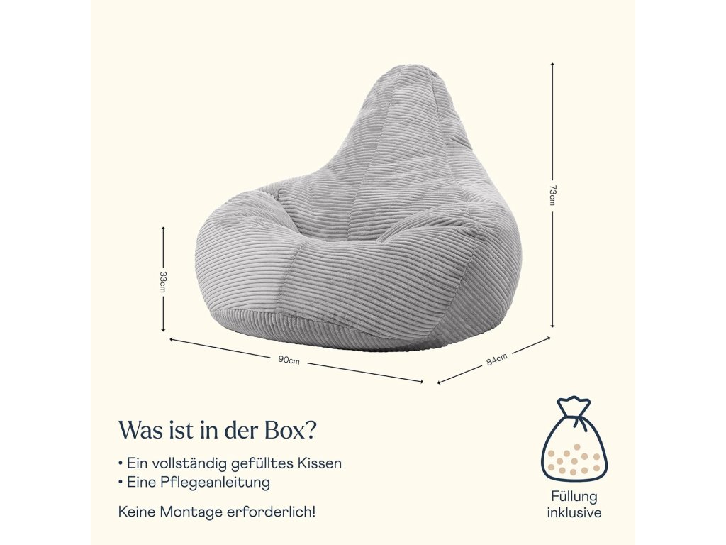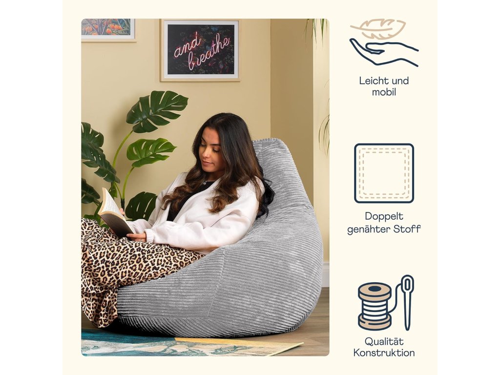 Sedací vak Icon Dalton Cord je moderní a mimořádně pohodlné křeslo, které se přizpůsobí vašemu tělu a poskytne ideální místo pro odpočinek, čtení nebo sledování televize.