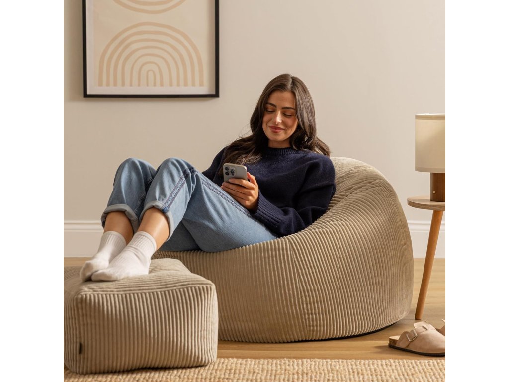 Icon Kingston sedací vak s podnožkou je stylové a mimořádně pohodlné křeslo pro každodenní relaxaci 🛋️. Díky měkkému manšestrovému potahu a ergonomickému tvaru poskytuje skvělou oporu těla při odpočinku, sledování televize nebo čtení.