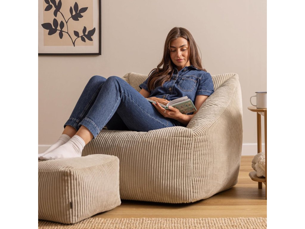 Icon Natalia Bean Bag Chair je stylové a mimořádně pohodlné křeslo pro dospělé, které promění váš obývací pokoj v oázu relaxace. Elegantní béžový flaušový manšestr dodává interiéru hřejivý a luxusní vzhled.