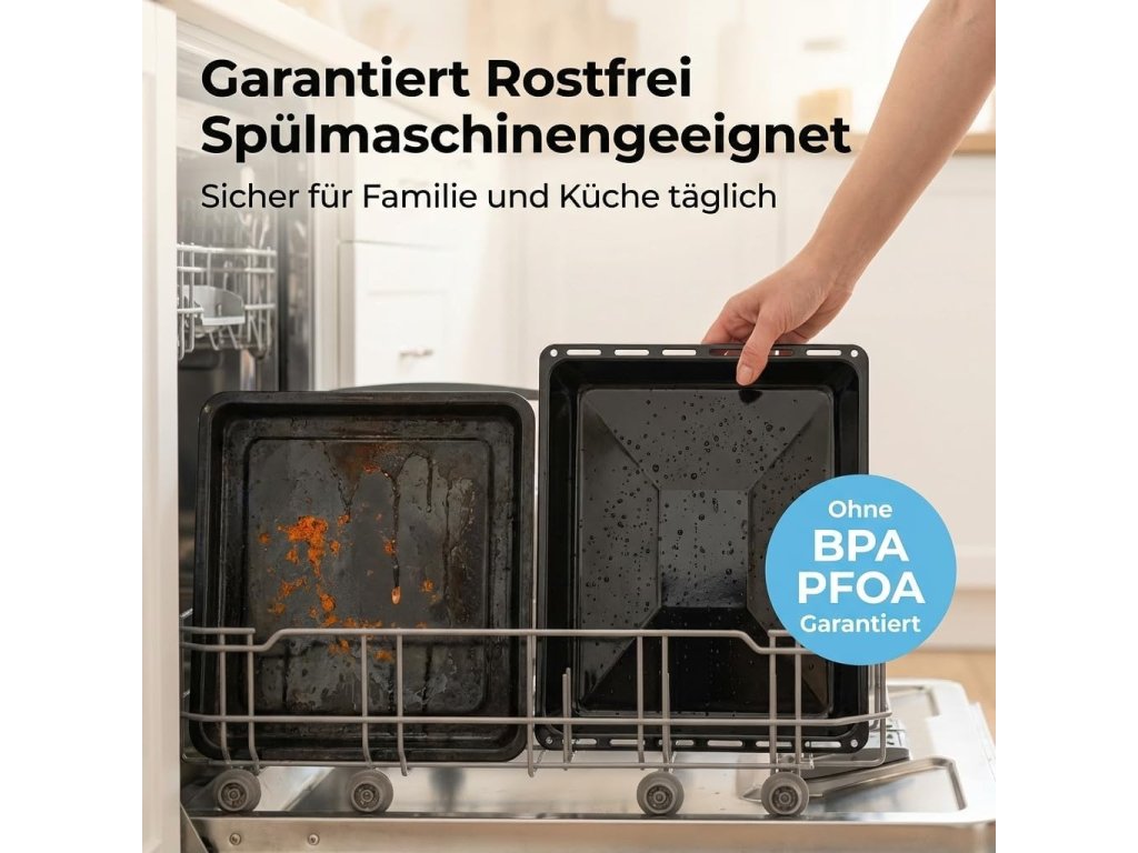 Smaltovaný povrch plechu je odolný proti poškrábání a velmi snadno se čistí. Po použití jej stačí umýt běžným prostředkem na nádobí nebo vložit do myčky.