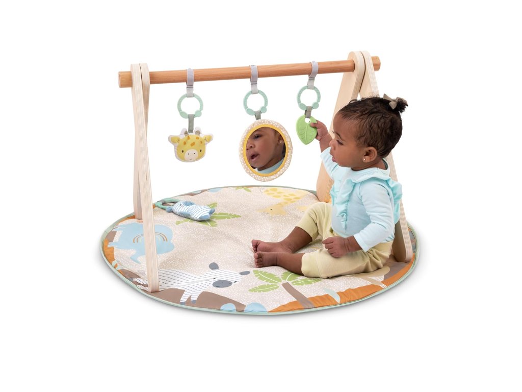 Ingenuity Wonder & Wood dětská hrací podložka s dřevěnou hrazdou