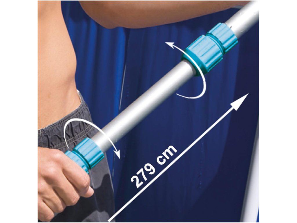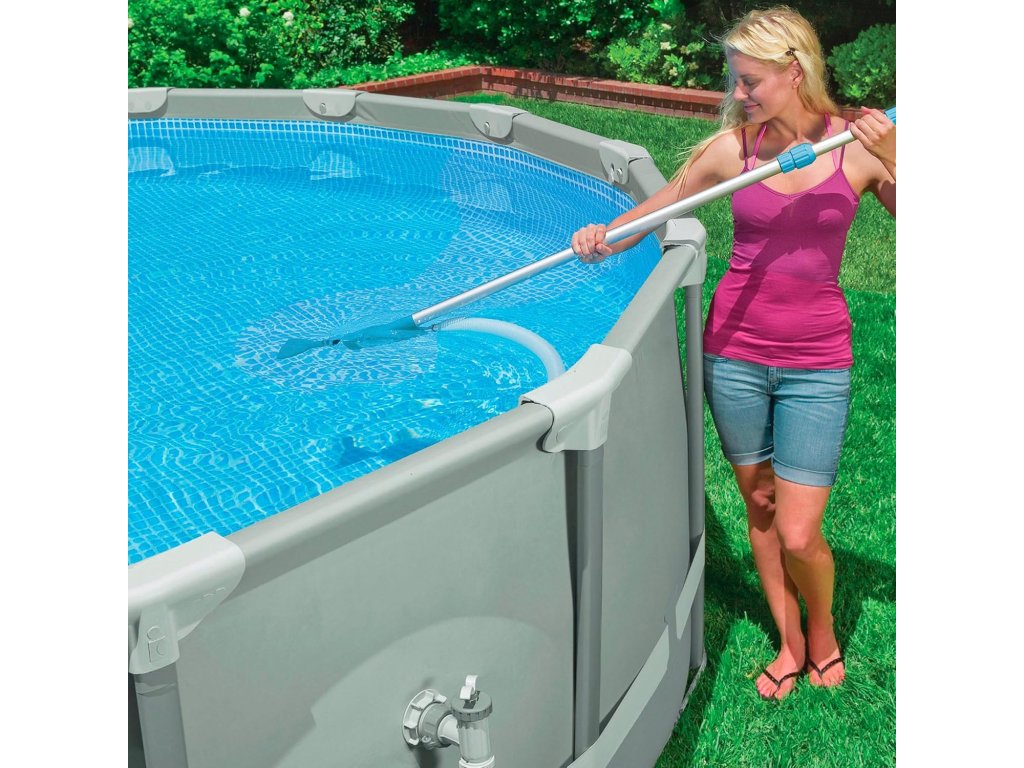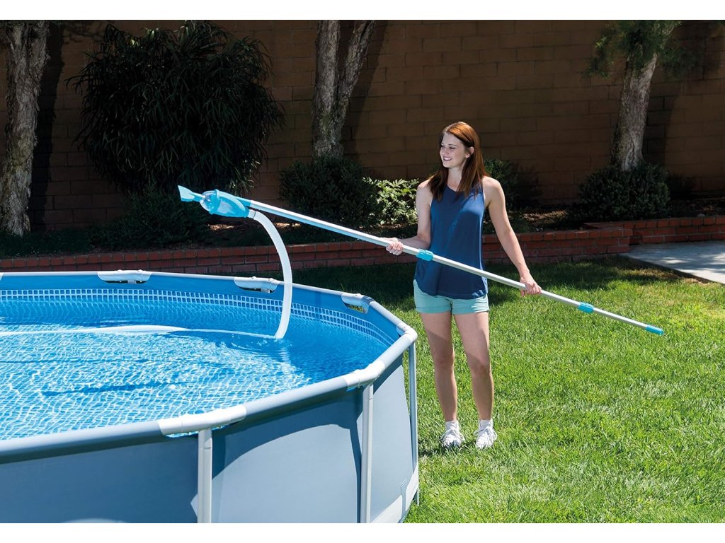 Součástí balení je bazénový vysavač připojitelný k filtračnímu systému, který účinně odstraňuje nečistoty ze dna bazénu. Díky teleskopické tyči snadno dosáhnete i na vzdálenější místa a vyčistíte celý bazén bez námahy.