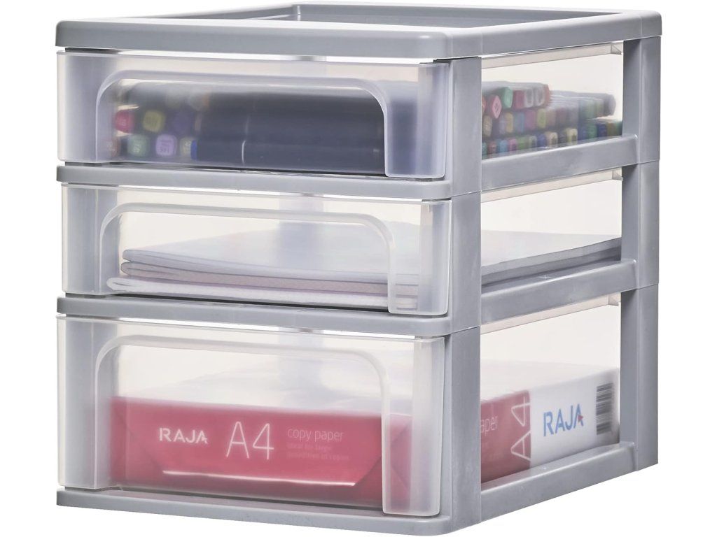 Iris Ohyama organizér na psací stůl se 3 zásuvkami A4 šedý
