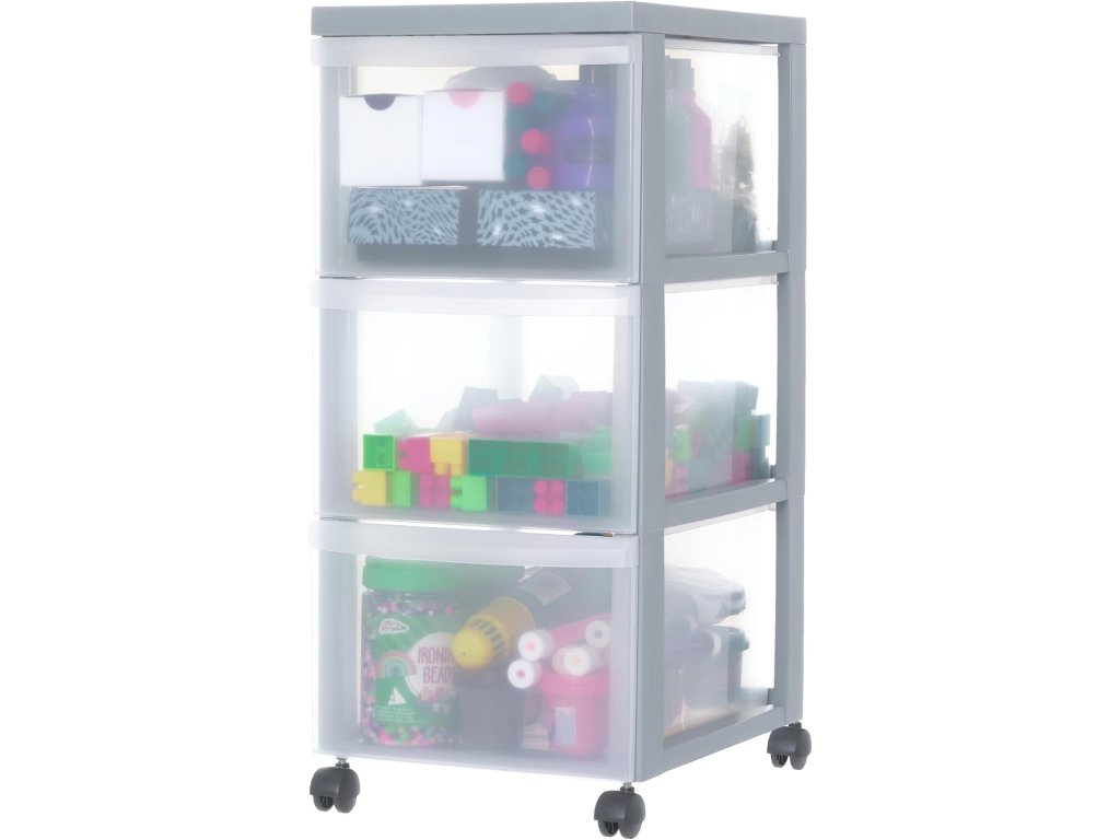 Iris Ohyama plastový box s kolečky, 3 zásuvky A4 DC-303 šedý