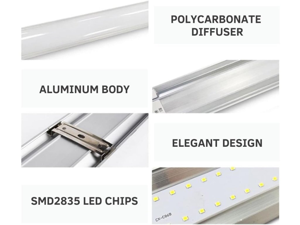 Svítidla jsou navržena s důrazem na dlouhou životnost a odolnost proti vlhkosti, což umožňuje jejich použití i v náročnějších podmínkách. Neutrální bílé světlo o teplotě 4200 K poskytuje přirozené a rovnoměrné osvětlení vhodné pro práci i běžné používání.