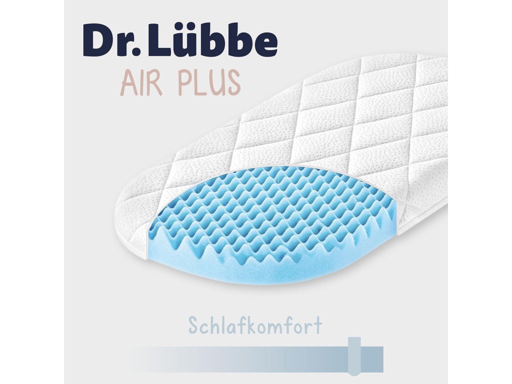 Dětská matrace Julius Zöllner Dr. Lübbe Air Plus je navržena s důrazem na zdravý a bezpečný spánek kojenců a malých dětí. Jádro matrace tvoří kvalitní studená pěna s profilovanou strukturou, která zajišťuje optimální cirkulaci vzduchu a snižuje riziko přehřívání.