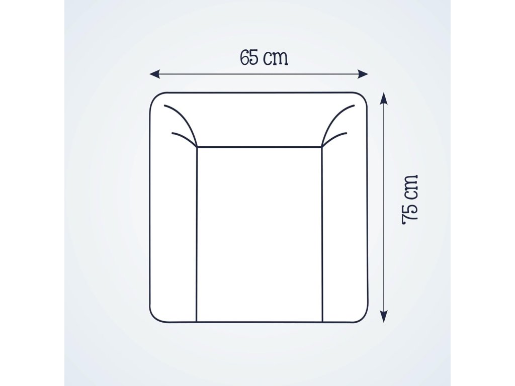 Rozměry 65 × 75 cm odpovídají standardním přebalovacím plochám. Zvýšené okraje pomáhají udržet dítě bezpečně na místě během přebalování. Ideální volba pro novorozence i batolata.