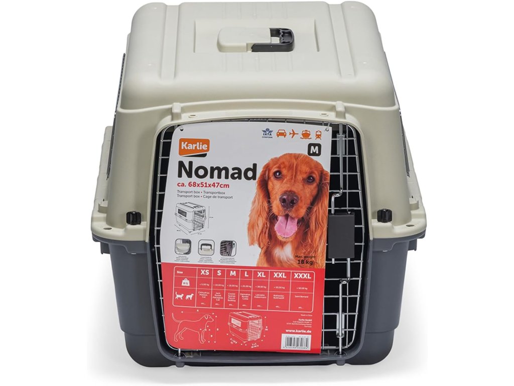 Karlie Nomad transportní box velikosti M je praktická a bezpečná přepravka pro psy i kočky. Je ideální pro cestování autem, vlakem nebo letadlem a poskytuje vašemu mazlíčkovi pohodlí a dostatek prostoru během přepravy.