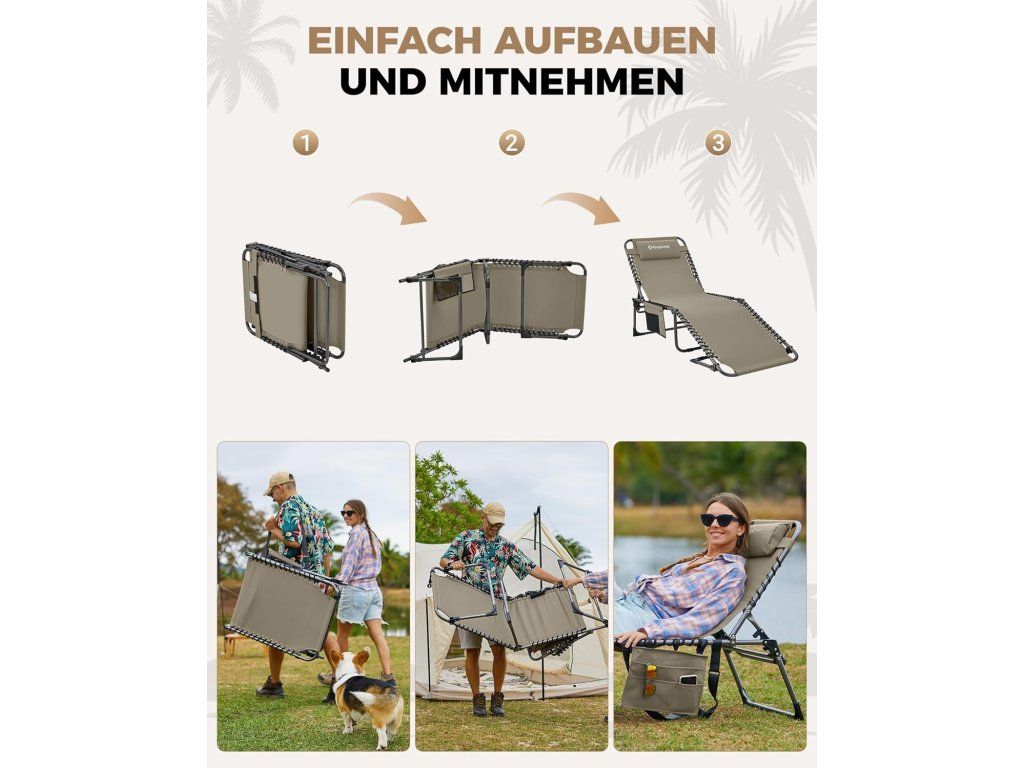 KingCamp KC2029 skládací kempingové lehátko – sada 2 ks je ideální volbou pro pohodlný odpočinek na zahradě, terase, pláži i při kempování. Stabilní konstrukce a kvalitní materiály zajišťují komfort i při delším používání. 🌿