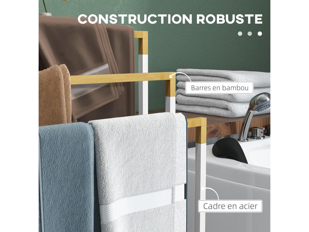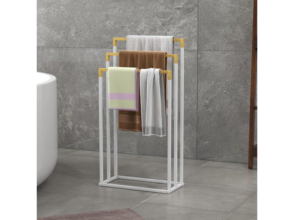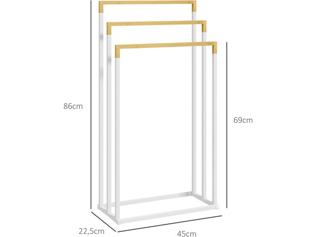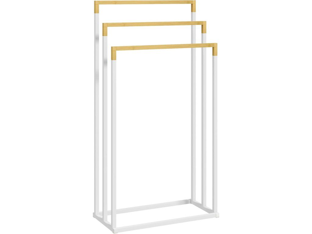 Kleankin stojan na ručníky 3 tyče bambus/ocel 45 × 22,5 × 86 cm bílý/přírodní