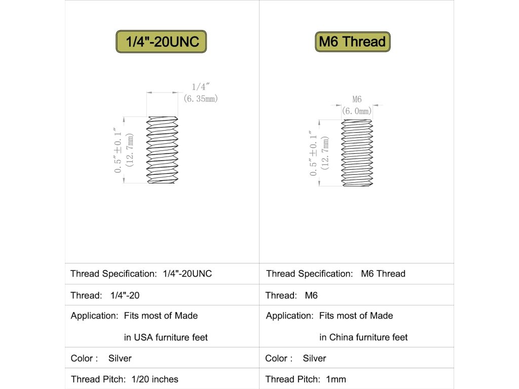 Koncovky jsou určeny pro záclonové tyče o průměru 22 mm nebo 25 mm. Jsou vybaveny pevným závitem 1/4"-20 UNC, který zajišťuje stabilní a bezpečné uchycení ke tyči.