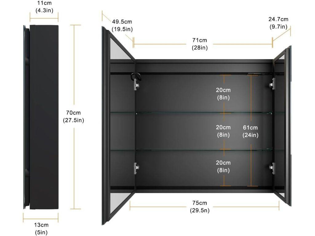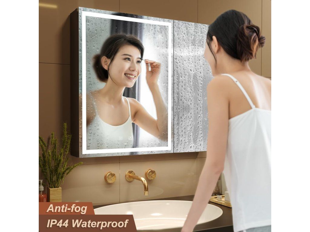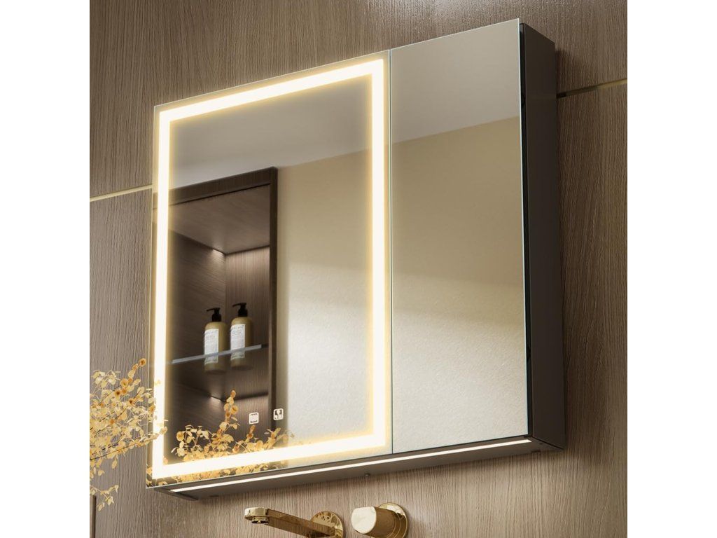 LED koupelnová zrcadlová skříňka 75×70 cm stmívatelná s USB a anti-fog
