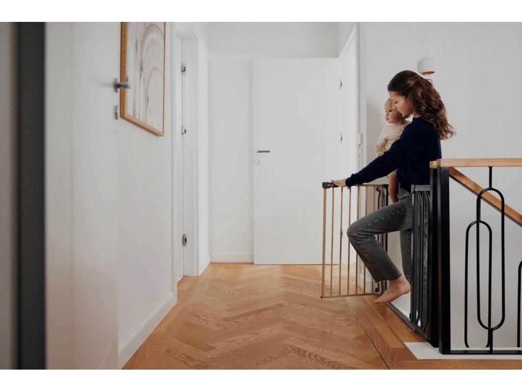 Praktická a bezpečná ochrana pro děti i domácí mazlíčky. Zábrana Lionelo Truus Slim v elegantní černé barvě Black Onyx pomáhá zabránit vstupu na schodiště nebo do místností, kde hrozí riziko úrazu.