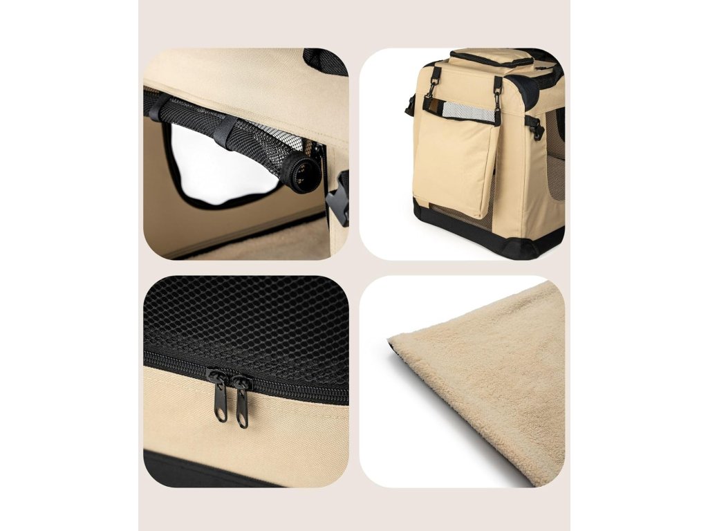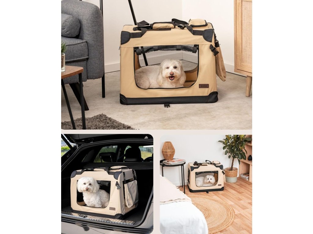 Lionto skládací přepravní box pro psy na cesty a do auta 60 × 42 × 44 cm béžový