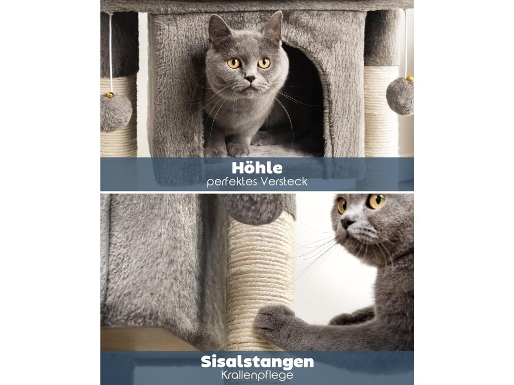 Lionto Škrabací strom pro kočky s jeskyní a plyšovými míčky 60 cm, šedý