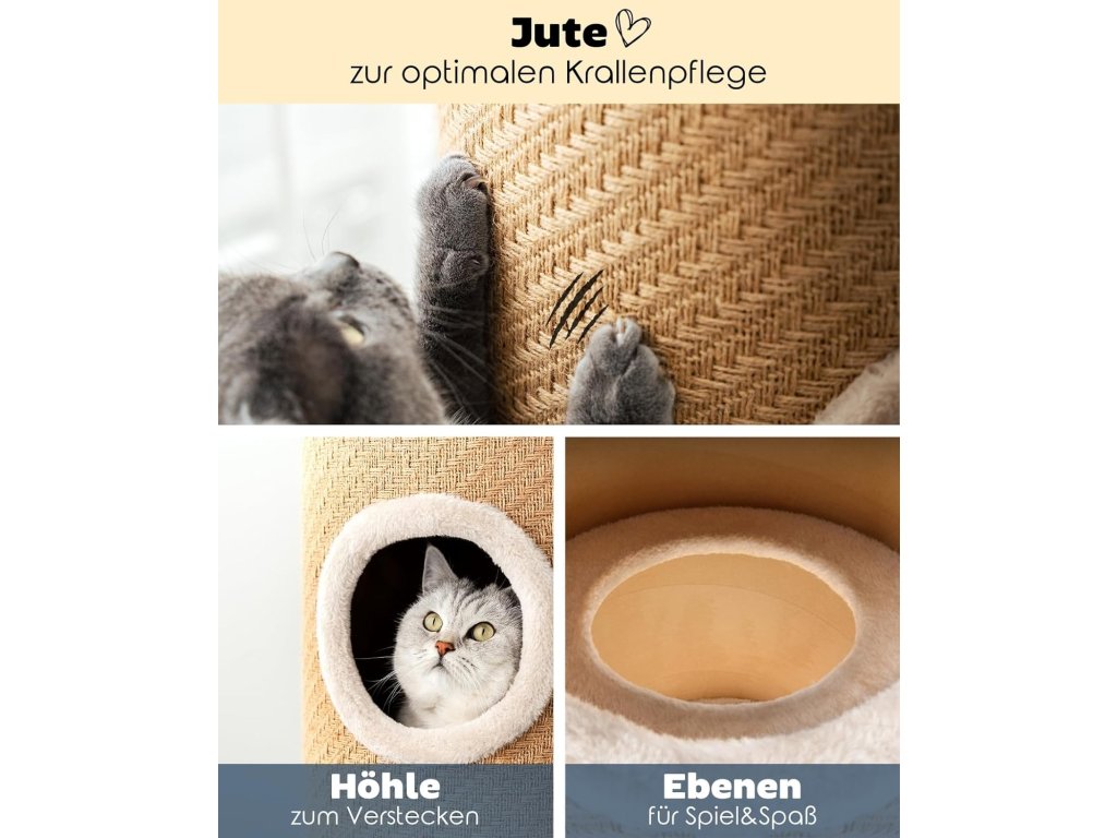 Robustní a stabilní škrabací válec lionto nabízí kočkám ideální kombinaci odpočinku, hry i péče o drápky. Díky výšce 100 cm je vhodný i pro větší plemena a umožňuje přirozené protahování těla při škrábání.