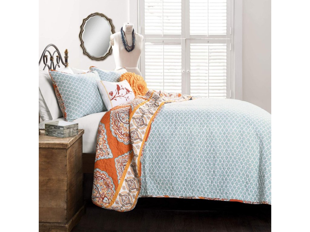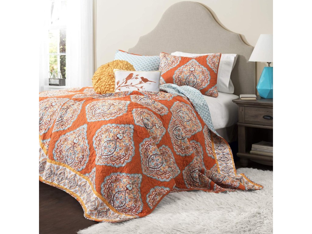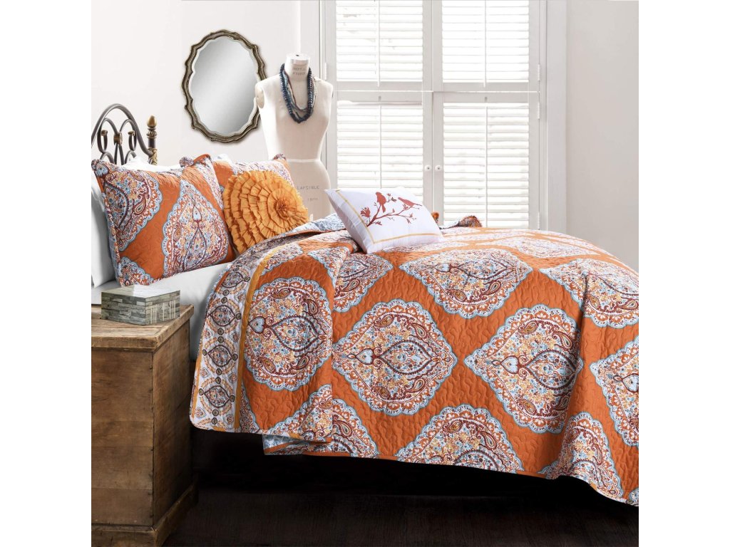 Lush Decor Harley je elegantní a výrazná sada v oblíbené mandarinkové barvě, která okamžitě oživí každou ložnici. Sada nabízí stylový orientální vzor, kvalitní prošívání a příjemný bavlněný materiál. Potahy jsou oboustranné, takže si můžete snadno měnit vzhled podle nálady.