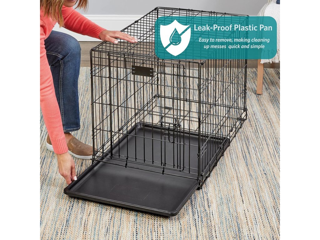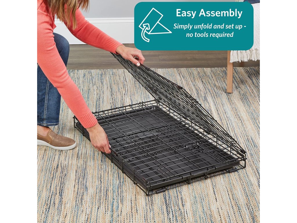 Box je vybaven dvěma dvířky, která umožňují snadný přístup zepředu i z boku a usnadňují umístění v různých prostorech. Součástí balení je dělicí stěna, díky které lze velikost boxu přizpůsobit růstu psa, což je ideální zejména pro štěňata.
