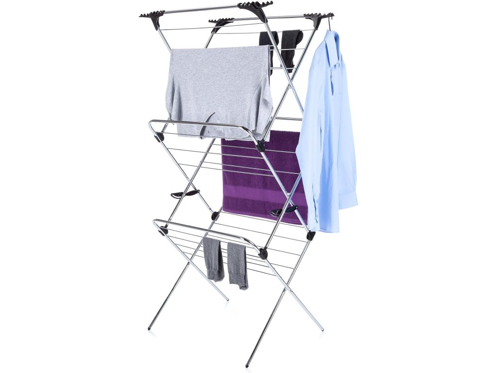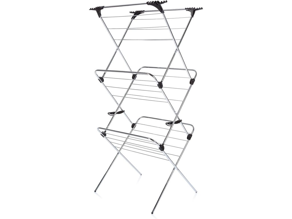 Prostorný a stabilní sušák na prádlo ideální do domácností, kde je potřeba sušit větší množství prádla na minimálním prostoru. Model Trio Concertina Plus nabízí třípatrové uspořádání a celkovou sušicí plochu 21 metrů.
