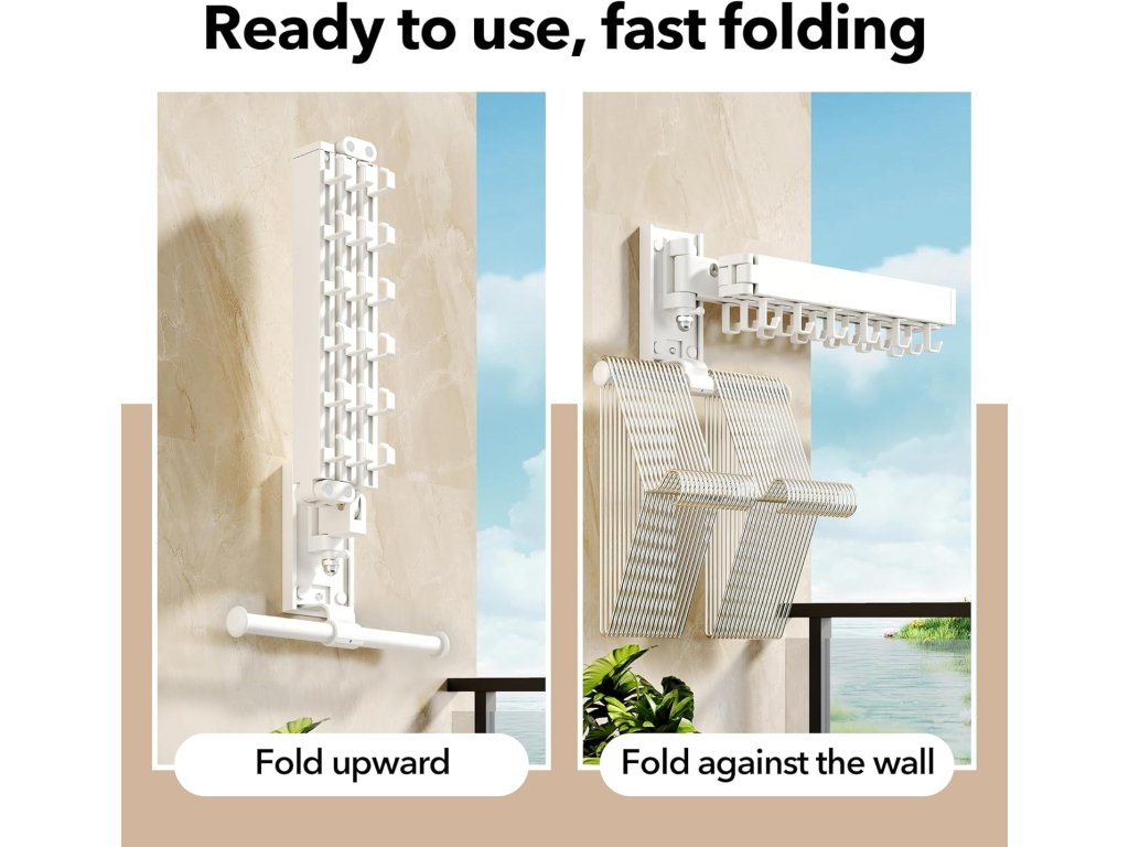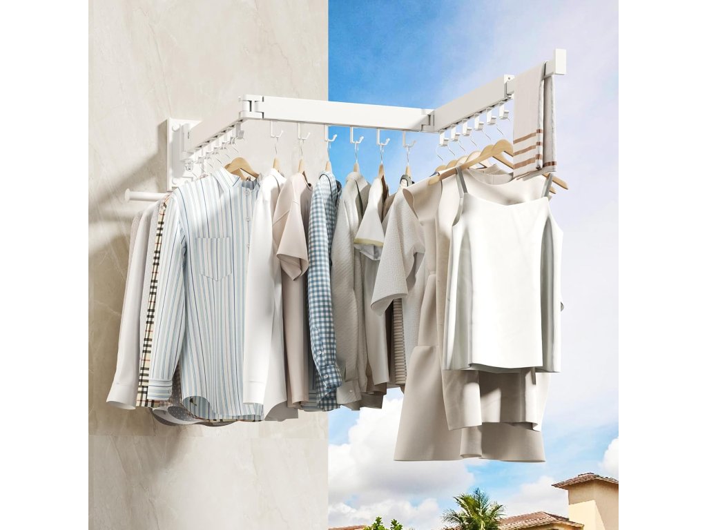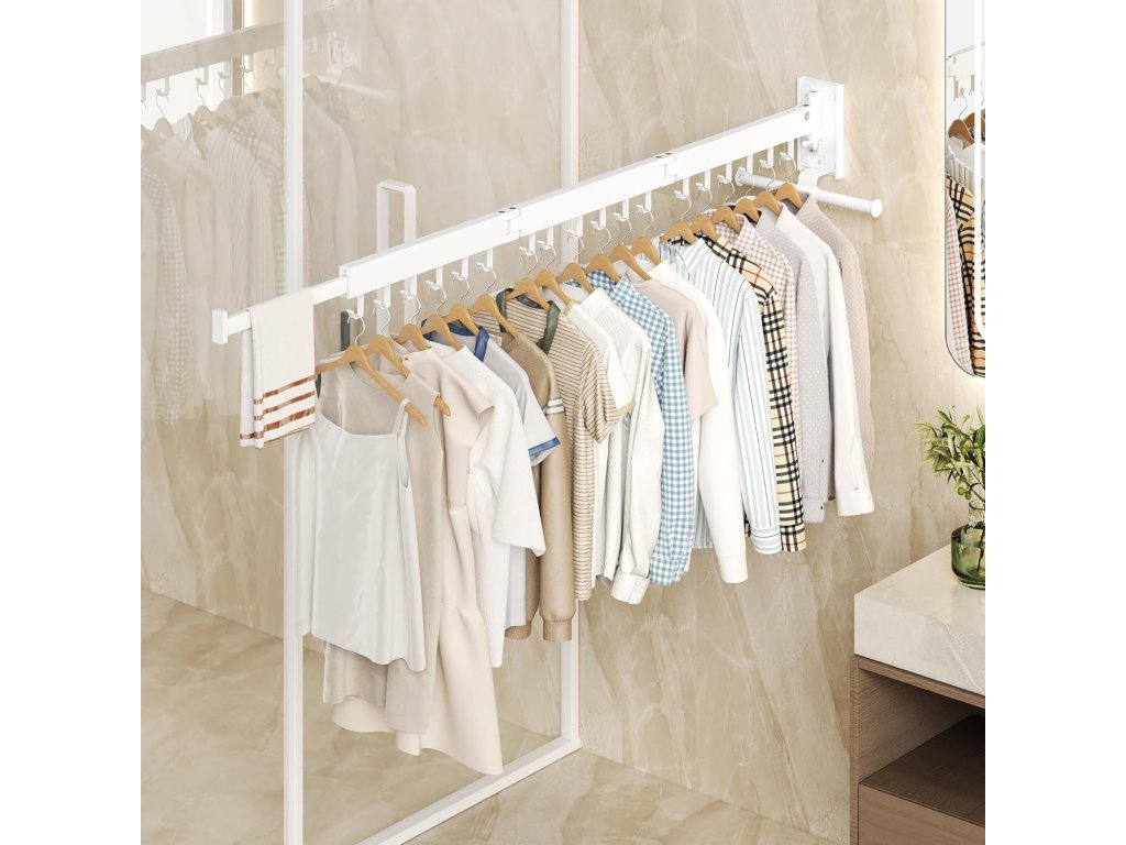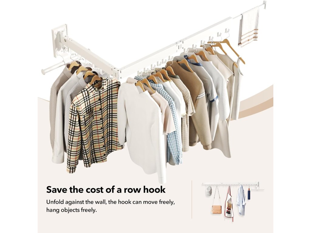 Nástěnný výklopný věšák na oblečení značky HEILAIYI představuje chytré a elegantní řešení pro zavěšení oblečení v interiéru. Díky skládací konstrukci šetří místo a zároveň nabízí vysokou kapacitu pro zavěšení ramínek s oblečením.