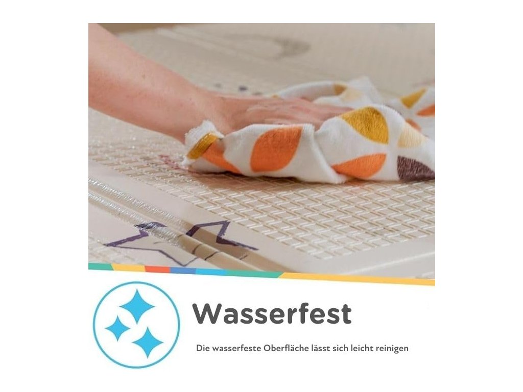 Praktický materiál umožňuje snadnou údržbu – podložku stačí otřít vlhkým hadříkem. Je ideální volbou do dětského pokoje, obývacího prostoru i na cesty.