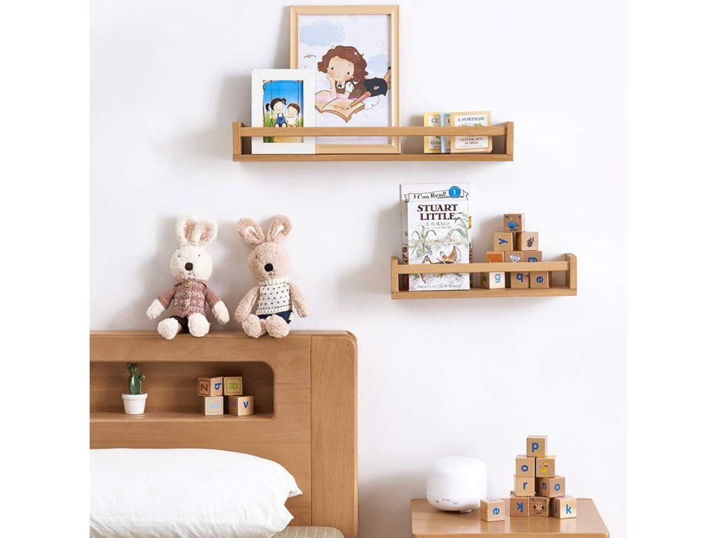 Tato elegantní police z masivního dubového dřeva je ideálním řešením pro vystavení dětských knih, pohádek nebo oblíbených hraček. Díky zvýšené přední hraně knihy bezpečně drží na místě.