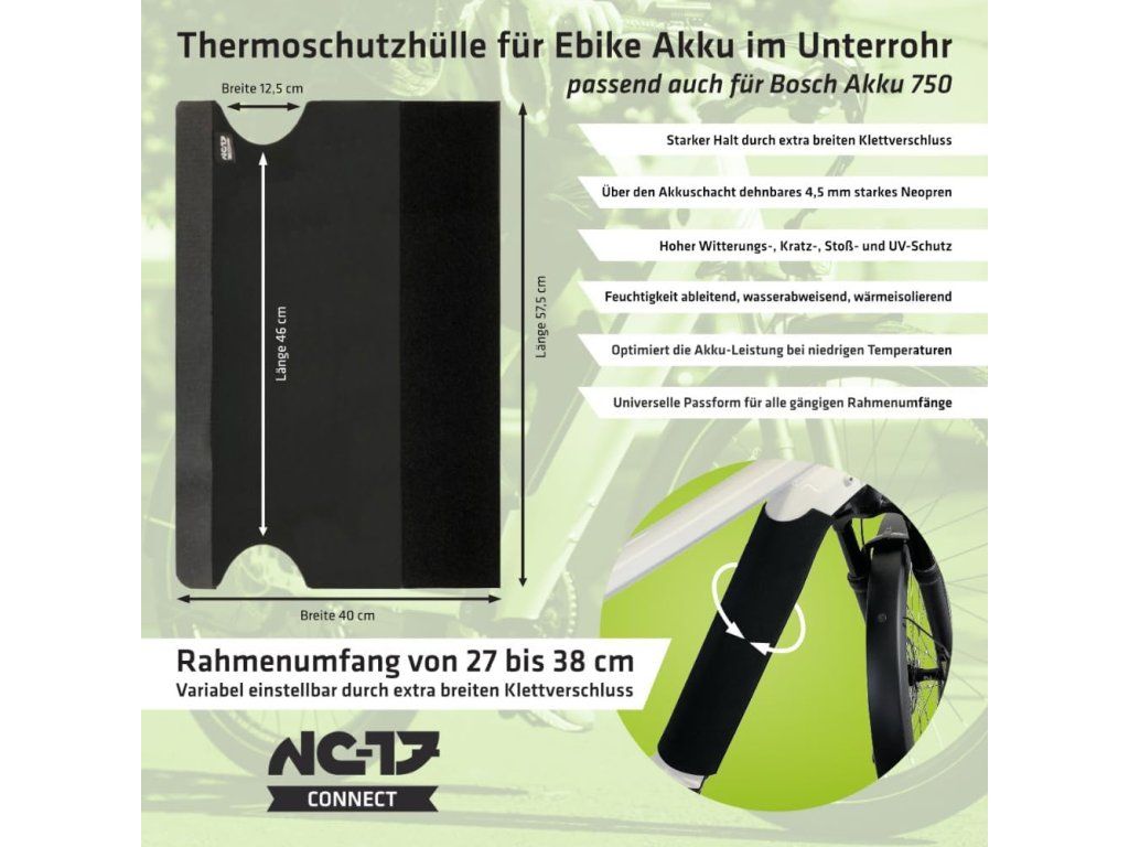 V chladném počasí může výkon baterie výrazně klesat. Díky tomuto návleku udržíte baterii déle v optimální teplotě, čímž zvýšíte její efektivitu a prodloužíte dojezd.