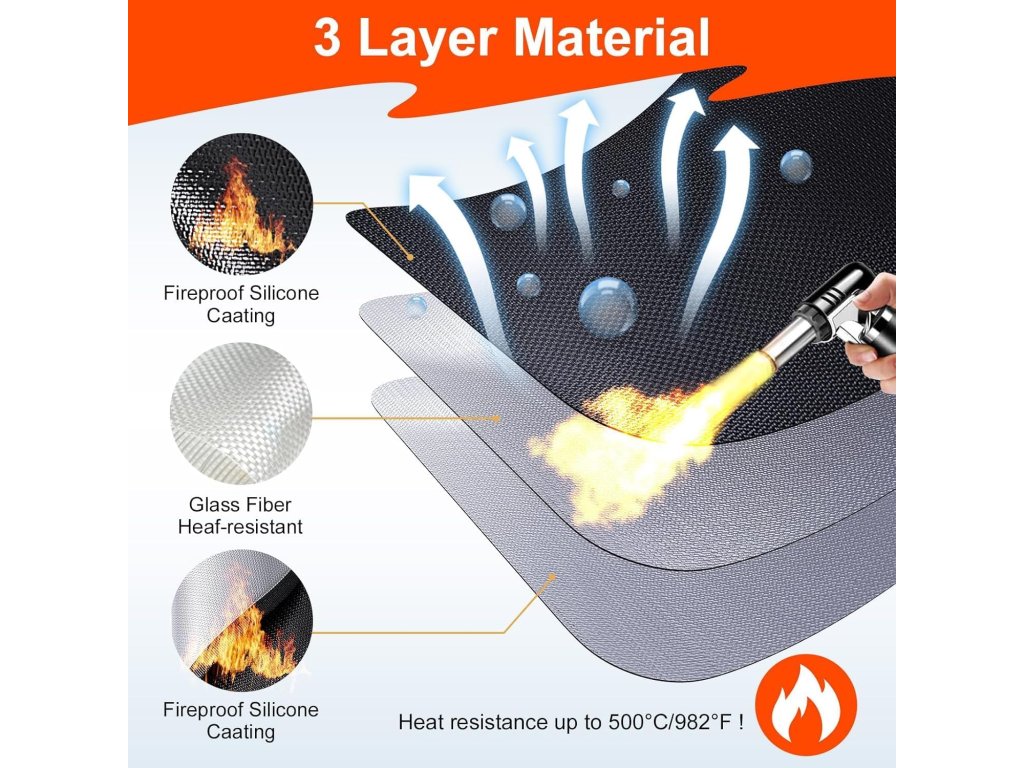 Chraňte svou terasu, balkon nebo zahradu před žárem a mastnotou 🔥🍖. Tato tepelně izolační podložka je navržena speciálně pro použití pod grily, ohništi nebo udírnami.