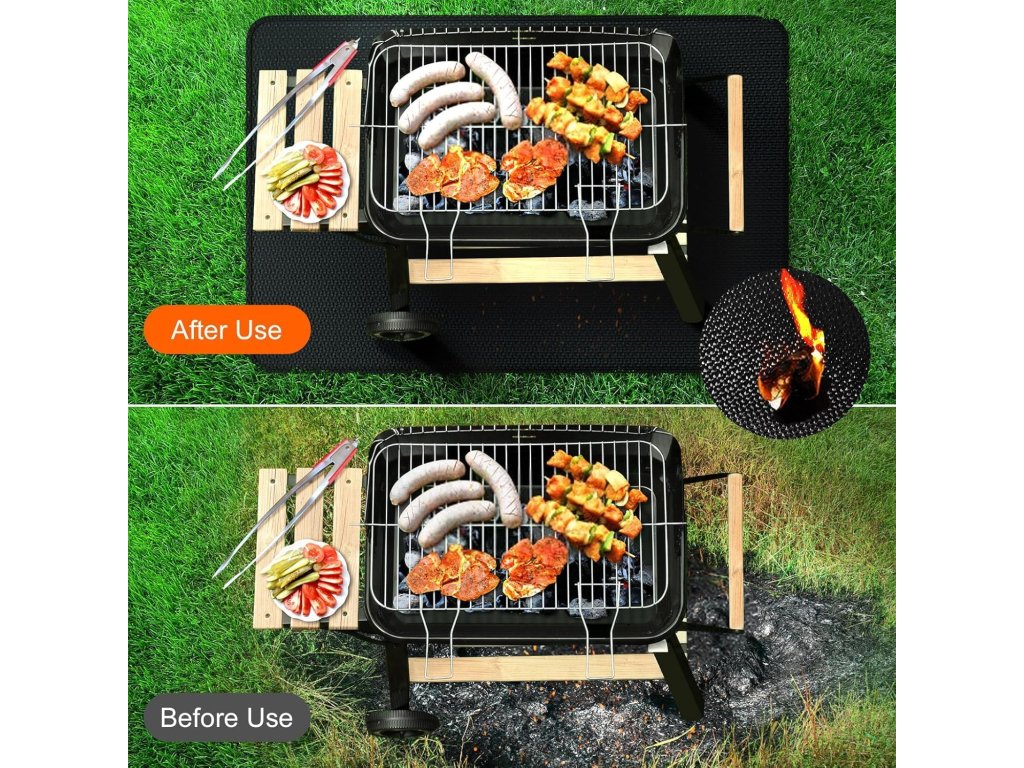 Perfektní pro zahradní grily, plynové BBQ, kotlové grily i přenosná ohniště. Podložka pomáhá předcházet poškození dlažby, dřevěných teras nebo trávníku.