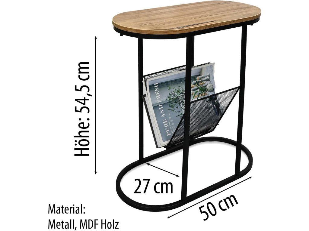 Oválný servírovací stolek s držákem časopisů dřevo/kov