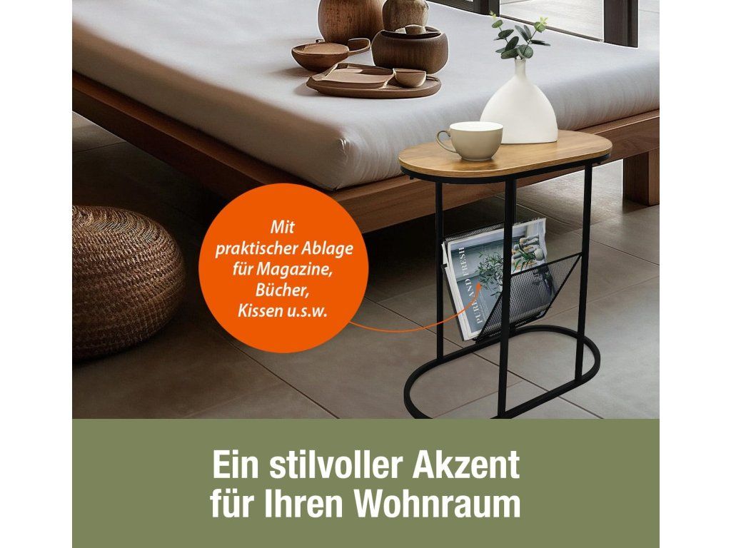 🛋️ Oválný servírovací stolek s držákem časopisů