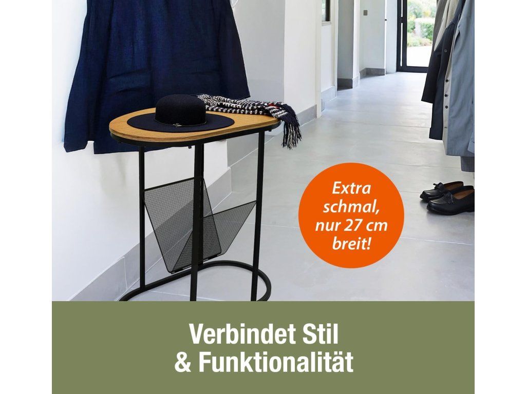 Dodejte svému interiéru styl i praktičnost s tímto moderním bočním stolkem. Kombinace kovu a dřeva vytváří elegantní design, který se hodí do každého obývacího pokoje nebo ložnice.