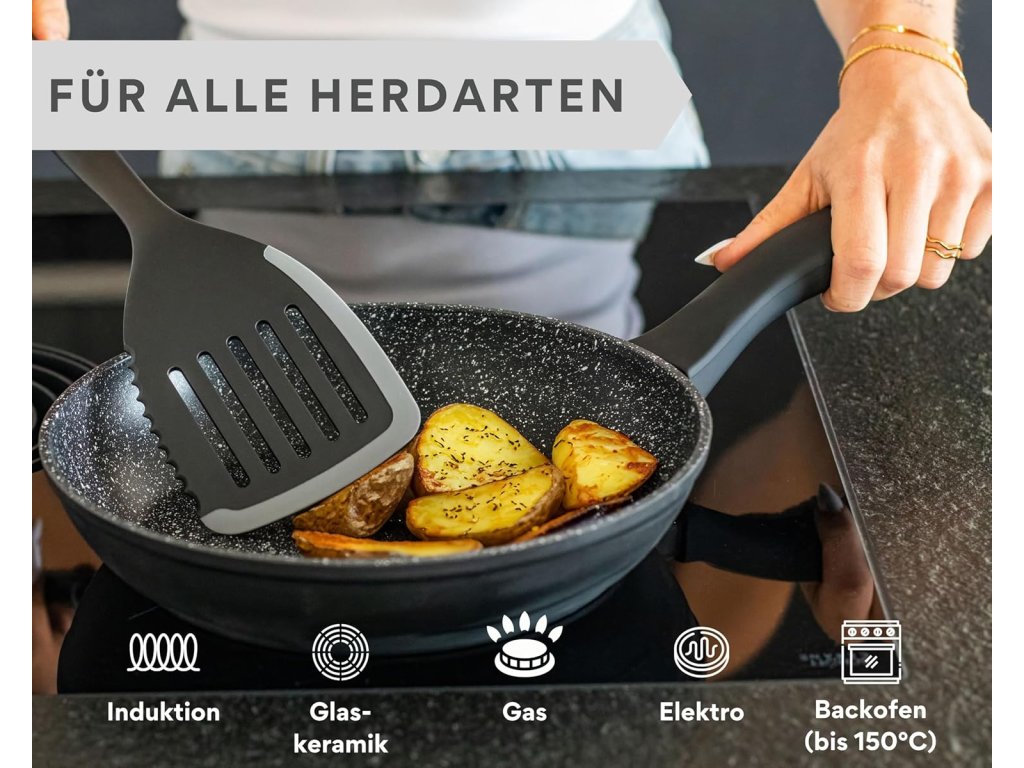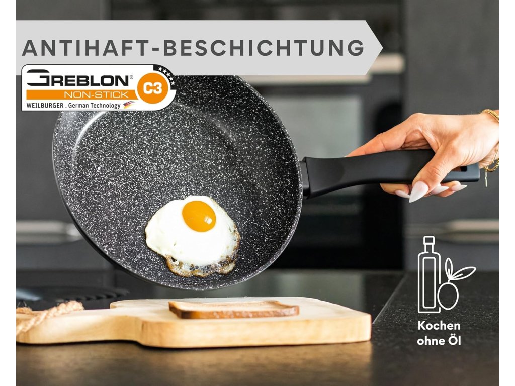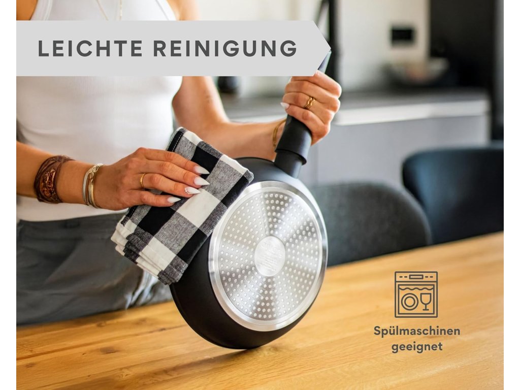 | Vlastnosti: | nepřilnavý povrch, rovnoměrná distribuce tepla, ergonomická rukojeť, snadná údržba |