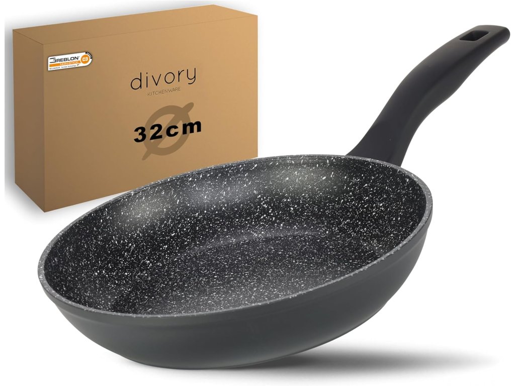 Velká a kvalitní nepřilnavá pánev Divory o průměru 32 cm je ideální pro přípravu jídel pro celou rodinu. Díky povrchu SREBLON C3 zajišťuje rovnoměrné rozložení tepla, vysokou nepřilnavost a dlouhou životnost. Pánev je vhodná pro všechny typy sporáků, včetně indukce, a umožňuje vaření s minimem oleje.