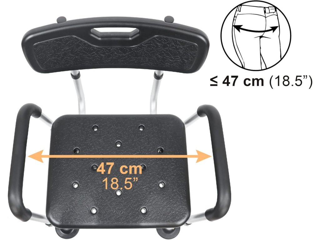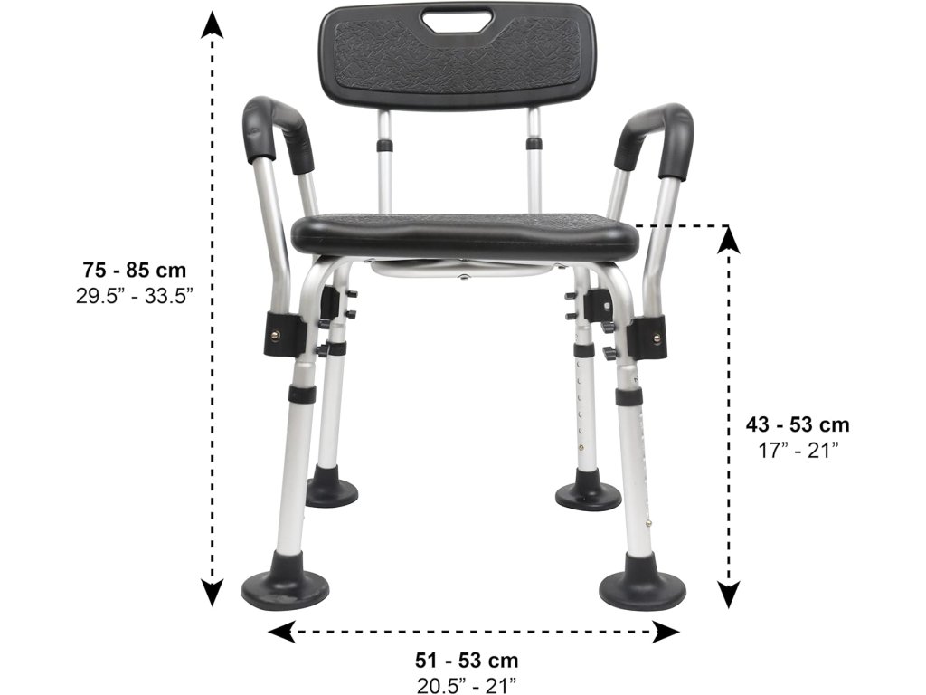 PEPE Mobility sprchová židle pro seniory s opěrkou a područkami černá