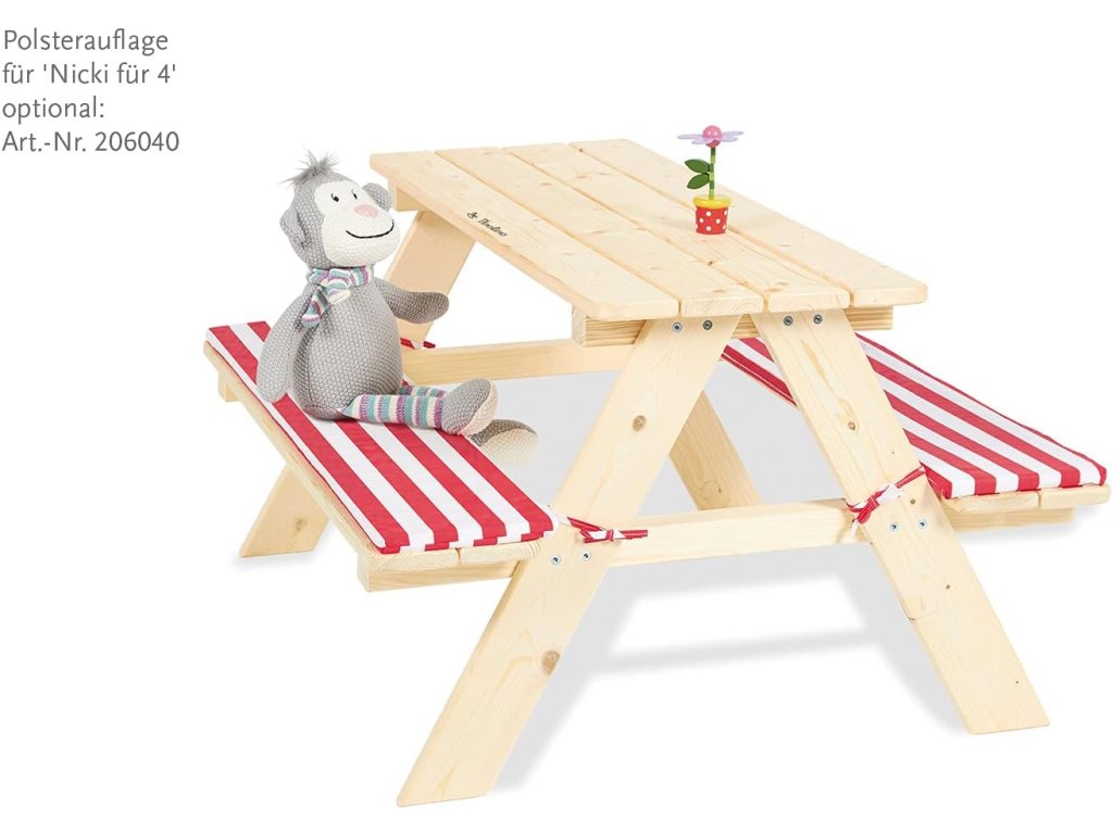 Dětský piknikový stůl PINOLINO Nicki je kvalitní a stabilní nábytek navržený speciálně pro malé děti. Díky robustní konstrukci z masivního dřeva je vhodný pro každodenní používání doma, na zahradě, terase i ve školkách.