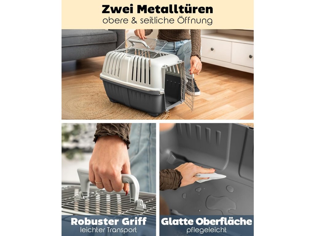 Plastový přepravní box pro psy a kočky Lionto s kovovou mřížkou 58,5 × 35,5 × 40 cm