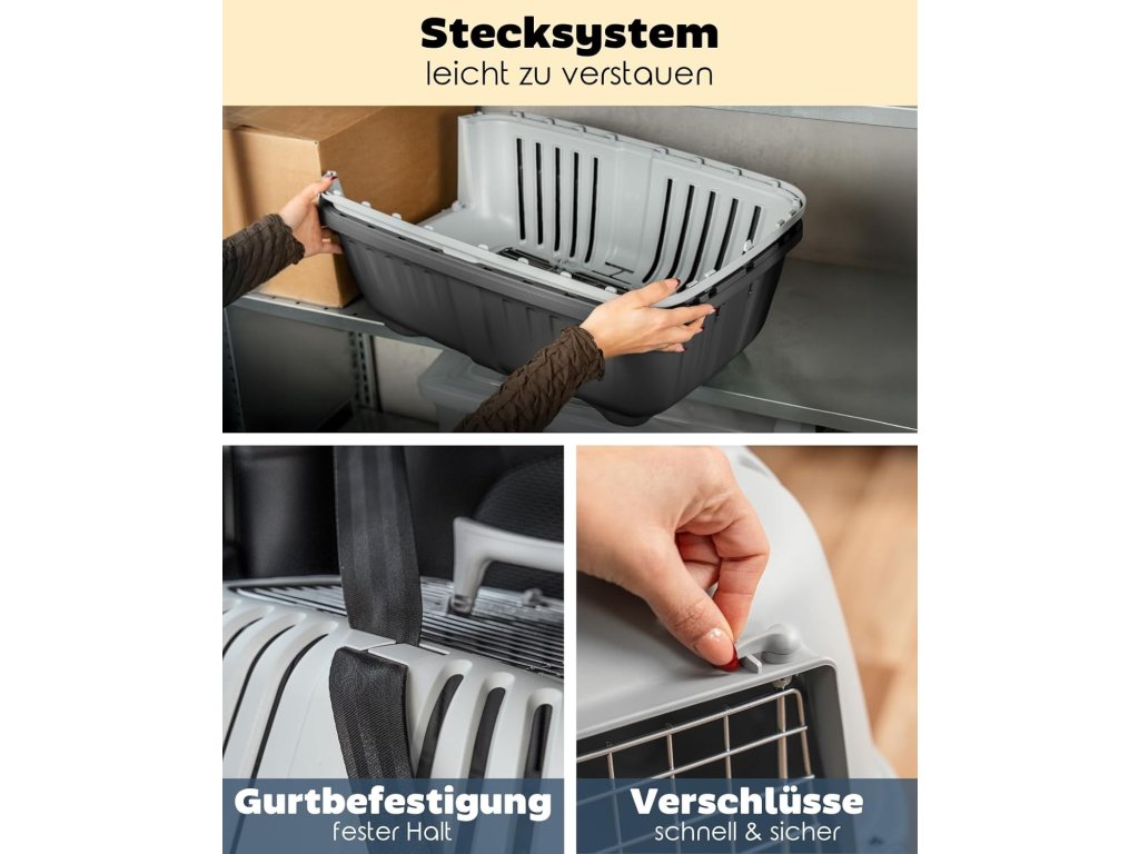 Box poskytuje zvířeti dostatek prostoru, pohodlí a bezpečí během přepravy autem, vlakem nebo při návštěvě veterináře.