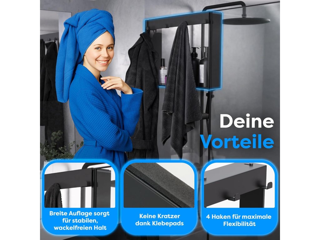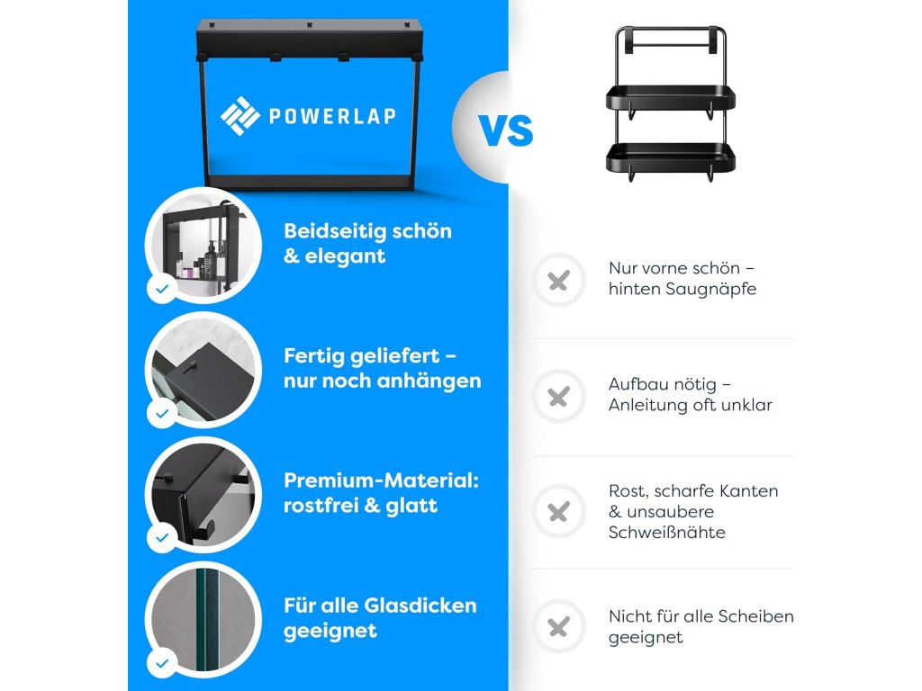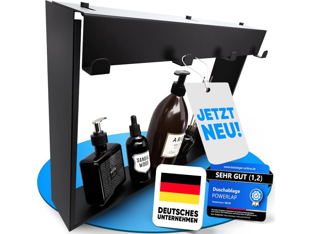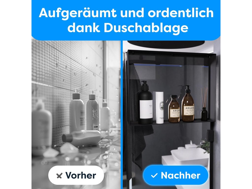 POWERLAP odkládací polička do sprchy je stylové a praktické řešení pro organizaci vašeho sprchového koutu bez nutnosti vrtání. Díky montáži bez vrtání ji snadno upevníte na hladké povrchy jako obklady nebo sklo. Polička je vyrobena z nerezové oceli s matným černým povrchem, který je odolný vůči korozi a vodnímu prostředí. Ideální pro uložení šamponů, sprchových gelů a dalších sprchových doplňků.